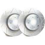 SP Performance slotted brake rotors provide excellent stopping power while looking great. The slots on the brake rotor surface expel the brake dust away from your braking surface and wheels. This keeps the braking surface cooler. All SP Performance Brake rotors are machine balanced and disc ground and meet or exceed OEM specification. The slotted brake rotors are direct replacements to your existing brake rotors and require no brake system modifications. All slotted brake rotors come with your choice of coating for rust prevention. The anti-corrosion coating is available in three colors; Gray ZRC, Silver ZRC, and Black ZRC.